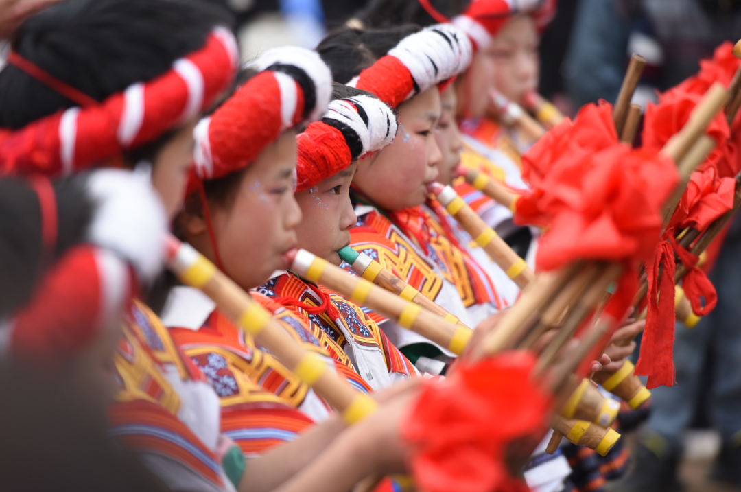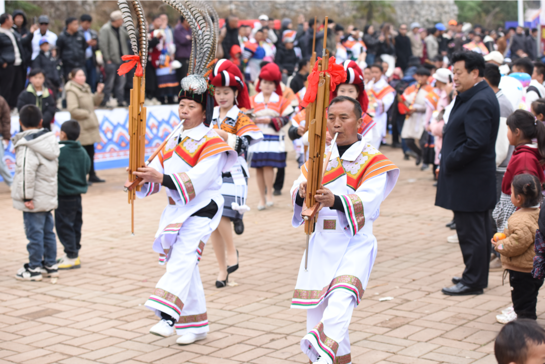 要说最抢眼的,还得数海发村自己的芦笙队。小伙子们脚上的绑腿足有三寸厚,腾空跃起时银饰叮当作响,落地时震得尘土飞扬。芦笙舞表演者杨小贵今年十二岁,他祖父就是当年跟着“芦笙王”张文友闯北京的老艺人。