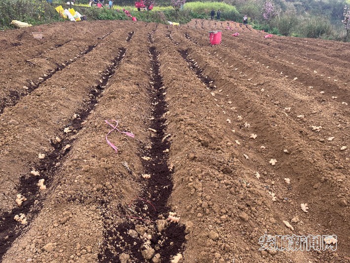 4月11日,记者踏入一块姜田,映入眼帘的是一垄垄排列整齐的姜沟和辛勤劳作的村民,村民们有的起垄、有的施肥、有的下种,只见他们分工明确,有条不紊地忙碌着。
