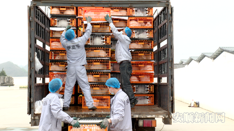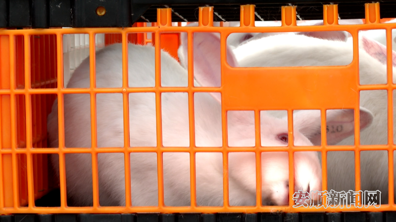 装车现场,工作人员两人一组,熟练分工协作,1小时后,200个兔笼将长5米多的货车车厢填充得满满当当,这1200只种兔再过8小时就可到达四川资中的种兔场进行养殖。“这车兔子将运往四川资中,运输过程中要注意通风,尽量少停车,不让兔子在笼里面闷热。”司机谌良金说。