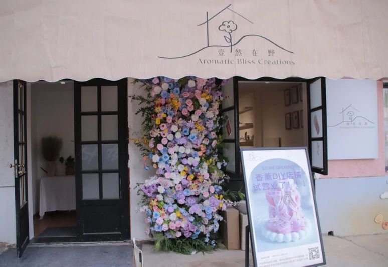 在麦田艺术活动中心对面,店主丹丹经营着一家名为壹然在野的香薰DIY店铺。“我本身很喜欢香薰,一直想将这份热情转化为事业。当发现这个新潮店铺云集、年轻人往来不断,氛围与人气俱佳的老印刷厂时,一下就被吸引住了。”丹丹分享道。