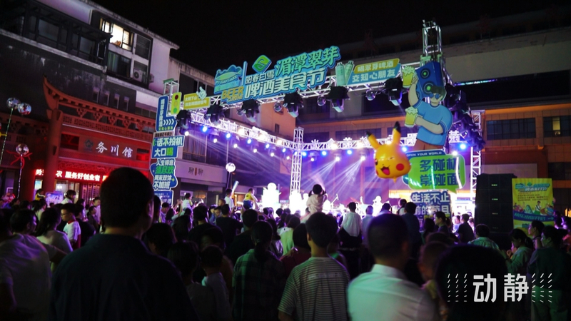 夜晚,中国茶城迎来全天客流高峰。这几天,新开设的茶啤酒美食一条街热闹非凡。在集合茶饮、音乐、市集等业态后,这条街成为市民和游客夜间消费新地标。游客曾女士带着朋友在街上逛了一圈,“太有氛围了,小吃很多,特产也很多,音乐会也很好听。”