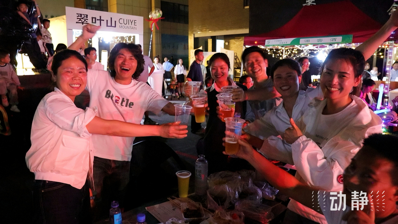 沿街设置的摊位里,一些茶与酒的跨界组合新产品格外受欢迎,“我们卖的是湄潭翠芽精酿啤酒跟茉莉毛尖精酿啤酒,结合音乐节做互动,今天已经卖了上千件了。”电商负责人喻友洪告诉记者。