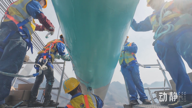 抗火防腐保护层施工结束后,项目团队还将安装主缆除湿系统,完成主缆“缠绕钢丝+无缝抗火密封+干燥空气除湿”主动式防护。所有工序结束后,能够实现大桥主缆在1100℃火场环境下燃烧60分钟不伤分毫,且长久阻燃防腐。