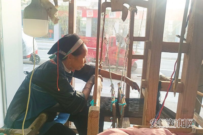 由于社区里有很多妇女善做手工,社区充分利用现有资源,修建了“非遗工坊”,安装传统民俗织布机,搭建蜡染池、购置蜡染缸、设立刺绣房。截至目前共扶持30余名搬迁群众创业,每月预计可提高收入1700元。