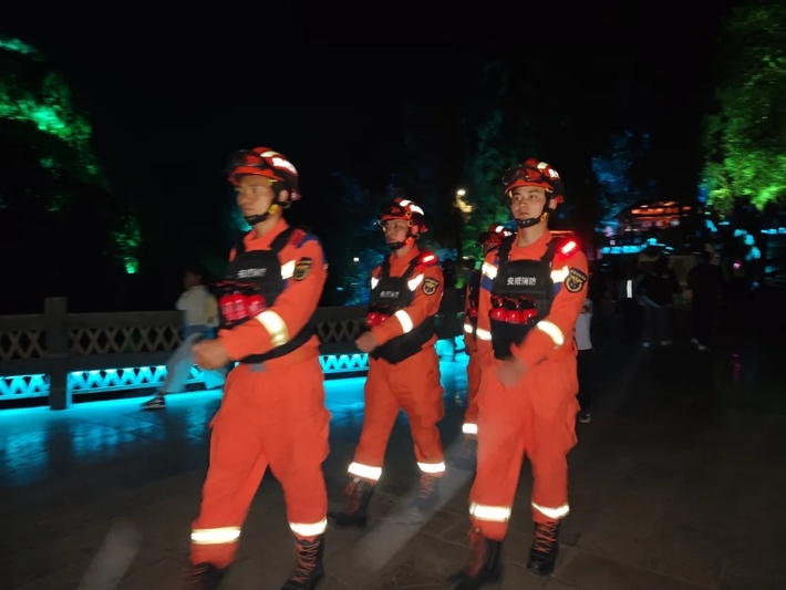 从景区入口到观景平台,“蓝焰黔行”志愿服务队化身“安全卫士”穿梭在人群中,认真排查各类重点区域隐患、妥善应对游客突发情况。同时,执勤小队通过线上与景区公司联动监测人流密集区域,线下配备灭火器、降温喷雾等器材装备同步开展流动执勤,确保救援不仅在线上更在巡逻的路上,用行动诠释了“你的每一步安全,都由我们全力守护”。