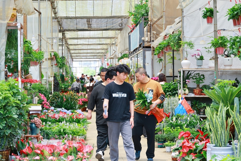 “五一”假期,市区花鸟市场人气火爆,众多市民携家带口前来选购花卉、观赏宠物,乐享悠闲的假期时光。