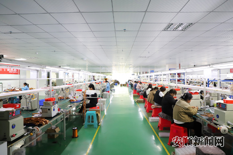 走进西秀经济开发区的安顺市伏特电子有限公司生产车间,全自动绕线机正高速运转,银白色的机械臂精准缠绕线圈,发出规律的嗡鸣声,一旁的生产流水线上,工人们熟练地进行电子元器件组装、检测等作业,各条生产线马力全开,呈现出一派热火朝天的生产景象。