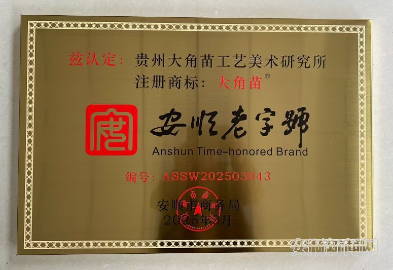 日前,市商务局颁发了新一批“安顺老字号”品牌,贵州大角苗工艺美术研究所名列其中。