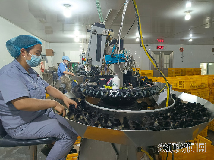 5月15日,走进位于板当镇小寨关村的安顺立华牧业有限公司鸡苗培育车间,工人们正有条不紊地对刚孵化出的鸡苗进行防疫处理。紫云自治县畜牧服务中心工作人员谭召军介绍道:“这里是安顺立华牧业有限公司的种鸡养殖场,培育出的鸡苗将被运往各个肉鸡养殖场。”