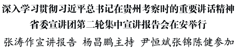 根据省委统一部署,5月20日,深入学习贯彻习近平总书记在贵州考察时的重要讲话精神省委宣讲团第二轮集中宣讲报告会在安顺举行。省委宣讲团成员、省委政法委常务副书记张涛作宣讲报告。市委书记杨昌鹏主持。