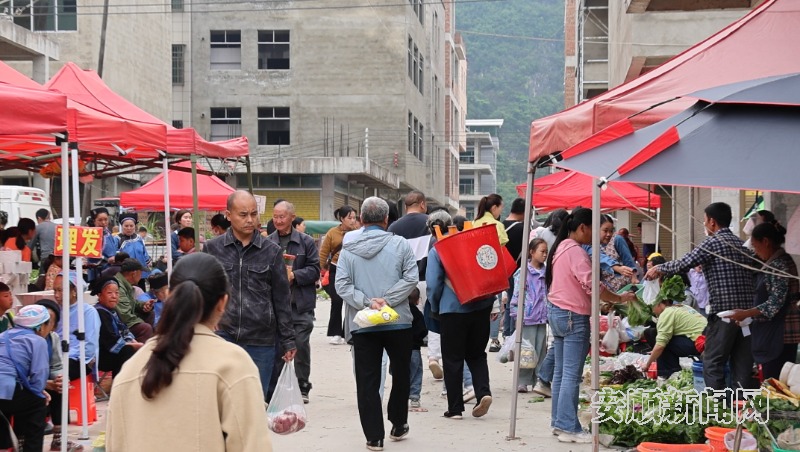5月18日,是紫云自治县县城赶集地点从民生路、紫阳路、科学路等旧址迁至云岭街道磨南安置小区后的首个赶集日。崭新的赶集市场不仅让以往略显杂乱的交易秩序焕然一新,更为周边群众营造出一个规范化、便利化的赶集环境,让传统集市焕发出全新的生机与活力。