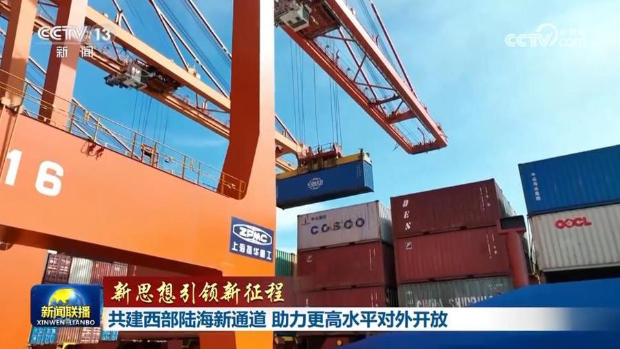 央视网消息(新闻联播):建设西部陆海新通道,是以习近平同志为核心的党中央作出的一项重大决策。习近平总书记指出,要大力推进西部陆海新通道建设,推动沿线地区开发开放,深度融入共建“一带一路”。牢记总书记嘱托,今年以来,沿线各地聚焦改革创新、数字赋能、产业协同三大重点任务,高水平建设西部陆海新通道,助力加快形成“陆海内外联动、东西双向互济”的对外开放新格局。