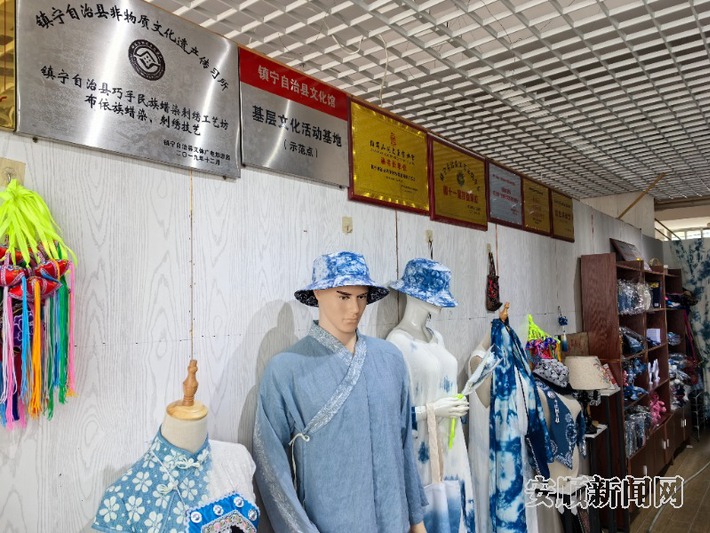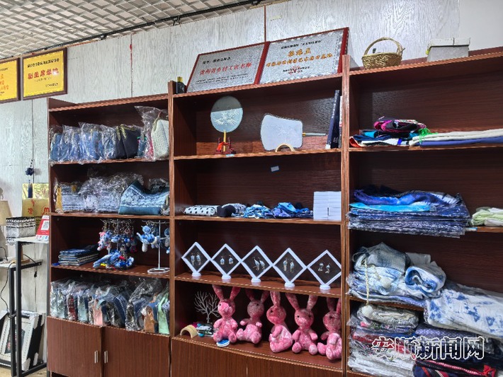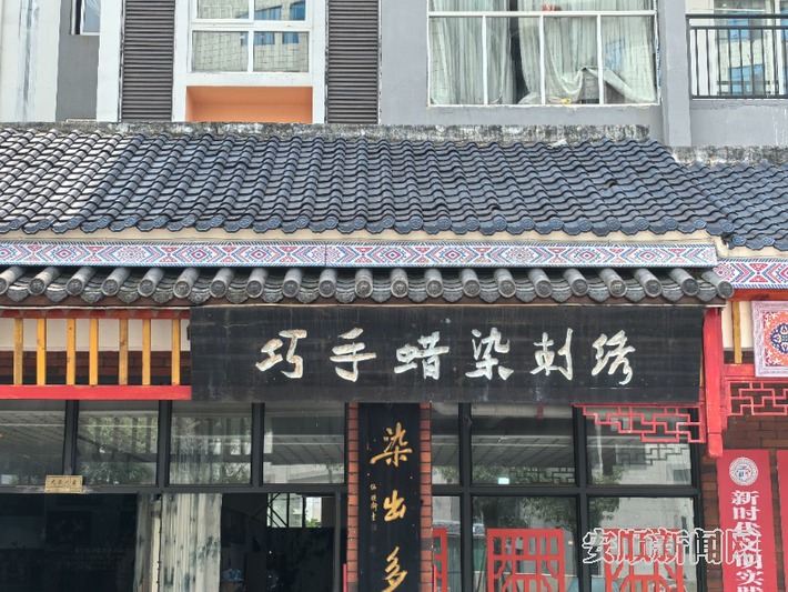 近日,记者来到位于镇宁自治县宁西街道景宁小区的巧手民族蜡染刺绣工艺坊,踏入工艺坊,浓郁的蓝靛气息扑面而来。素雅的蓝底上,白线勾勒出花鸟鱼虫、民族图腾,古朴而灵动。从大幅挂画、特色服装,到精巧的包包、配饰和文创产品,每一件作品都凝结着手艺人的巧思与匠心。这些精美的蜡染布料,需历经精心绘制、反复浸染、细心漂洗等多道繁复工序,方得成品。一旁的刺绣区域,同样色彩斑斓,针脚细密,与蜡染相映成趣。