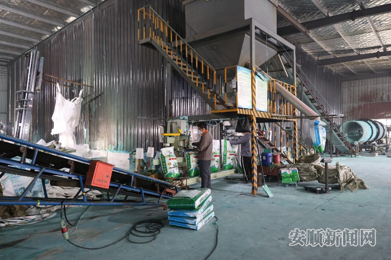 近日,记者走进西秀区宁谷镇木山堡村的贵州磷谷肥业有限公司加工车间,一派热火朝天的景象映入眼帘。只见生产线上机器高速运转,一袋袋优质复合肥有序产出,工人们熟练配合仪器完成化肥包装,随后进行搬运、码垛等工作,每一个环节都紧密衔接,确保生产高效进行。