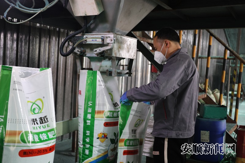 贵州磷谷肥业有限公司总经理彭路表示,贵州磷谷肥业有限公司是一家专注于复合肥研发、生产、销售为一体的大型复合肥生产基地,于2024年3月通过招商引资入驻宁谷镇,2024年8月正式投产,目前已建成原料区、加工区、成品区三大车间,以订单式生产及销售为主,随着生产线日益完善,生产线每日产量可达100吨,带动20余名工人常年稳定务工。