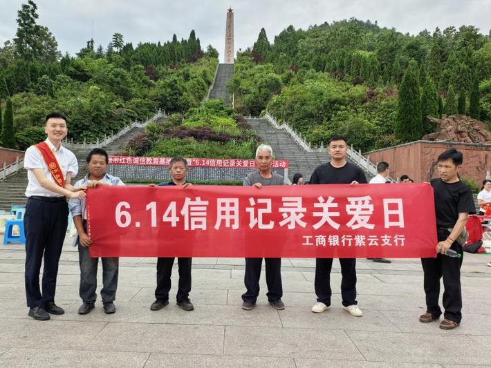 征信长征行。为进一步推进社会信用体系建设,营造“知信、用信、守信”的良好社会氛围,6月10日,该行辖属紫云支行联合人行安顺市分行到安顺市紫云自治县格凸河镇羊场村红色文化公园开展“征信长征行”暨“6·14信用记录关爱日”宣传活动。活动期间,支行工作人员深入户外广场,主动与过往群众交流,通过发放宣传资料、现场讲解等方式,结合实际案例普及信用记录的维护、征信查询途径、征信修复诈骗等征信知识,有效提升公众对征信的认知和重视程度。
