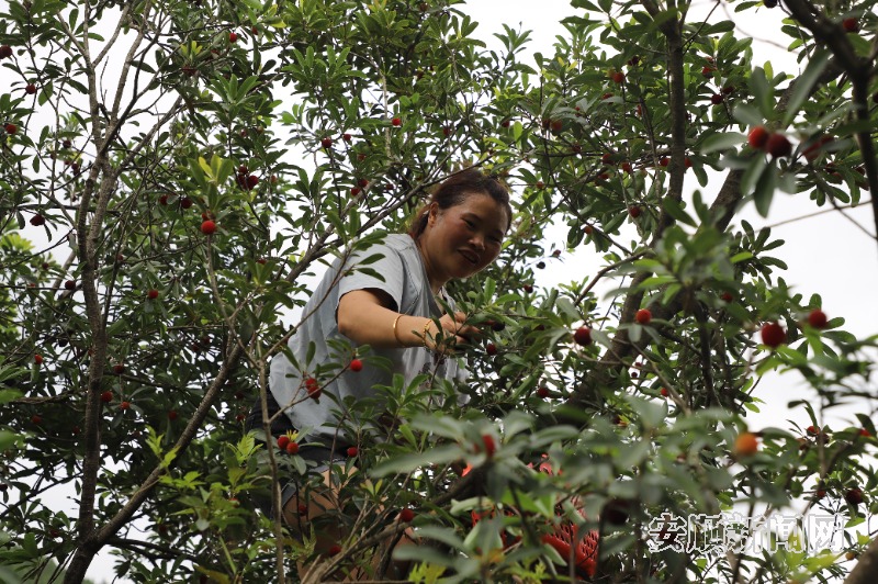 仲夏时节,镇宁江龙镇漫山遍野的杨梅树郁郁葱葱,一颗颗色泽艳丽的杨梅缀满枝头,农户穿梭在硕果累累的果林中,采摘成熟的杨梅。近年来,江龙镇凭借独特的自然资源优势,因地制宜,拓宽乡村产业发展路径,大力发展杨梅、樱桃、蜂糖李等特色水果种植业,有效拓宽群众增收渠道,以产业振兴促进乡村振兴。