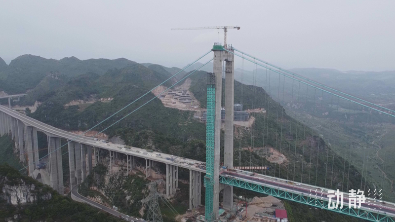 花江峡谷大桥横跨深切近千米的花江大峡谷,在桥旅融合的设计中,为了让游客更好地俯瞰峡谷,贵州在大桥主塔一侧设计了玻璃观光电梯。