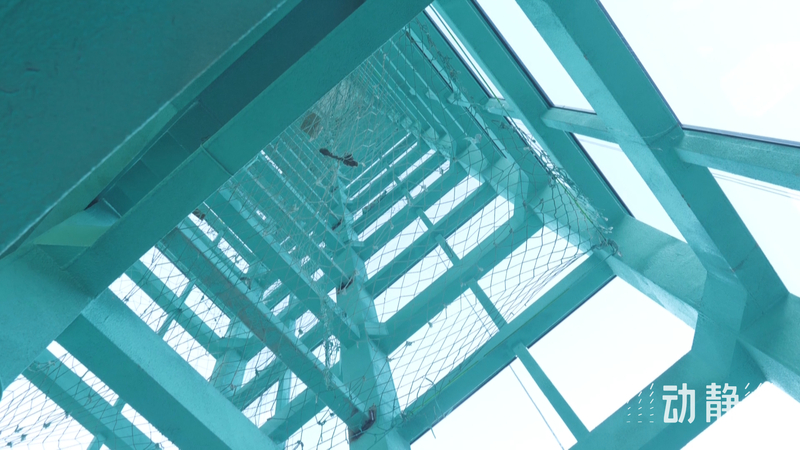 “总共是两部电梯和一个逃生通道,一旦电梯突然停电,或者是当游客感觉到不想坐电梯,就可以直接从逃生通道下去。”