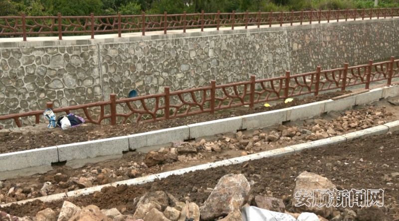 6月25日,在位于安顺经开区神骏文旅小镇的人行道绿化带海绵化改造项目现场,工人们正加紧进行土地平场与道牙石砌筑作业,建设现场井然有序。