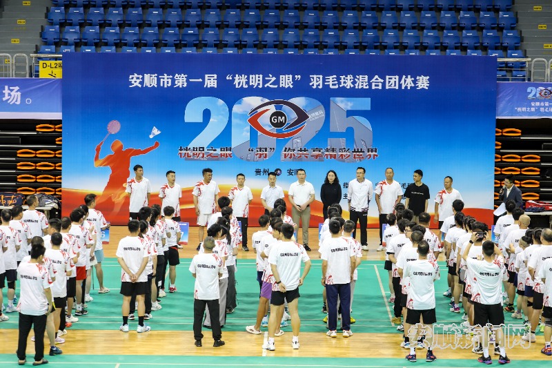6月28日,2025年安顺市第一届“桄明之眼”羽毛球混合团体赛在奥体中心开赛。来自各县(区)的14支代表队近200名羽毛球爱好者参赛。