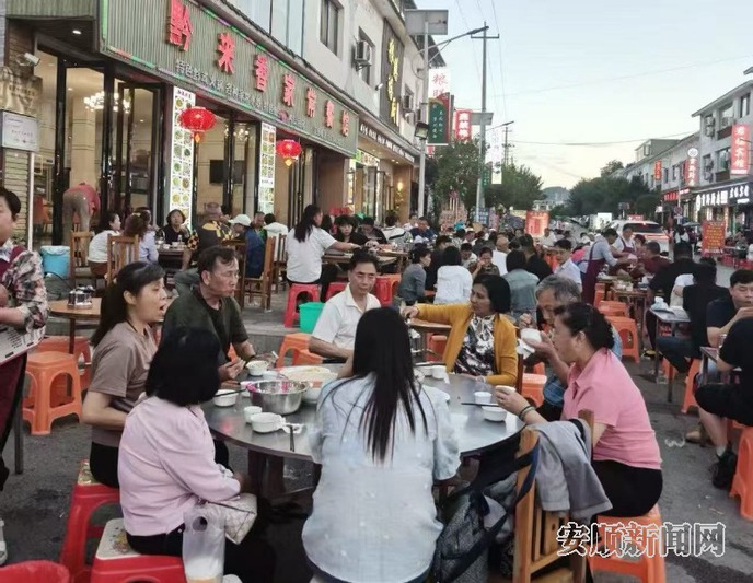 夜幕笼罩下,普定县韭黄村夜市街灯火通明,热闹非凡。其中,“黔来香家常餐馆”门前食客络绎不绝,店内座无虚席。此时,00后老板夏伟正在后厨忙碌,见到记者来访,他一边忙碌一边讲述起自己的创业故事。