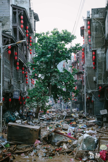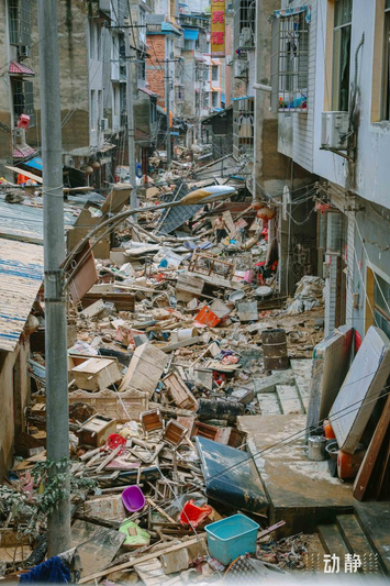 灾后的榕江街区一片狼藉