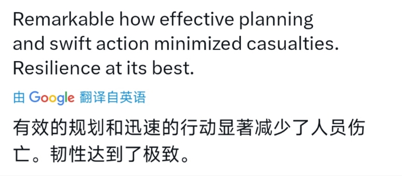 有人说:“有效的规划和迅速的行动显著减少了人员伤亡。韧性达到了极致。”