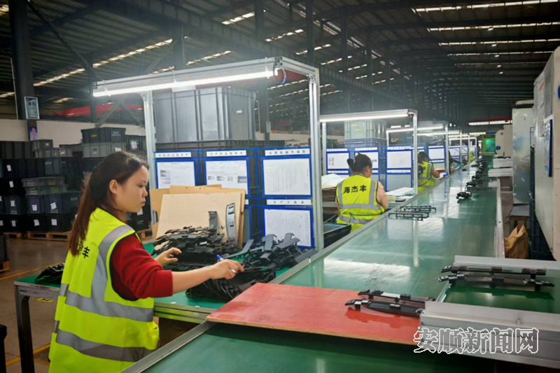 近日,记者走进贵州海杰丰汽车零部件有限公司的生产车间,21台智能设备与工人协同作业,机械手精准抓取、注塑机高效成型,一个个汽车零部件在流水线上有序下线。工人们则手持检测仪,对每个产品进行尺寸、性能的细致检查,随后贴标、打包、装车发往吉利汽车贵阳基地。“进入5月以来,订单量较去年同期呈现显著增长态势。在确保安全生产的前提下,各条流水线满负荷生产。”贵州海杰丰汽车零部件有限公司后勤部负责人秦林指着满载货物的物流车介绍。