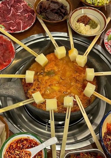 后来,随着时代的发展,龙老太夺夺粉在传承中不断创新。“夺夺粉”的盛器从瓷盆变成了更能锁住热量与味道的砂锅,米豆腐等菜品也不断丰富,如今已有数十种之多。最大的变化在于,曾经简单的小吃增加了多样锅底,不仅保留了传统的口味,还创新推出酸辣等新口味,满足了不同食客的需求,成为了更具安顺特色的火锅。