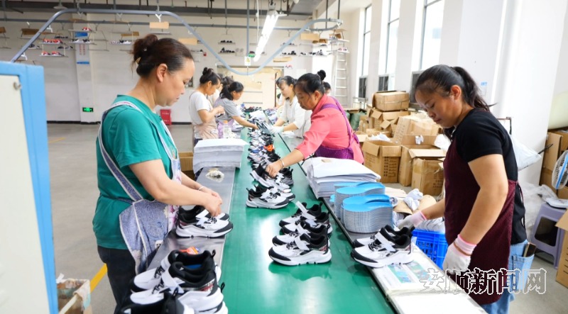 近日,记者走进安顺锦鹏鞋业有限公司宽敞明亮的成型车间,耳边是缝纫机轻快而规律的“哒哒”声,眼前是工人们专注忙碌的身影。一条条现代化流水线高速运转,一双双制作精良的成品鞋经过多道工序,被整齐装箱,等待着发往全国各地。