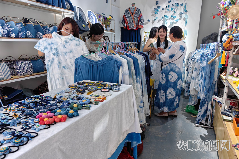 走进安顺古城历史文化街区、云峰屯堡景区、旧州古镇、天龙古镇等旅游景区的文创店内,形态各异的蜡染文创产品摆满货架,蜡染体验店更是一家挨着一家,成为景区里人气最旺的“文化打卡地”。