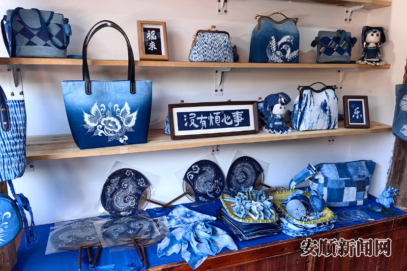“我们家几代人都在和蜡染打交道,我是第三代传人,女儿杨婷婷是第四代,她还是市级蜡染非遗传承人呢。”店主汪金绣手拿一支蜡染发圈,语气间尽是自豪。她告诉记者,安顺蜡染过去是藏在深巷里的老手艺,仅用于制作服饰、床上用品等家居用品,只在周边小范围里流传。