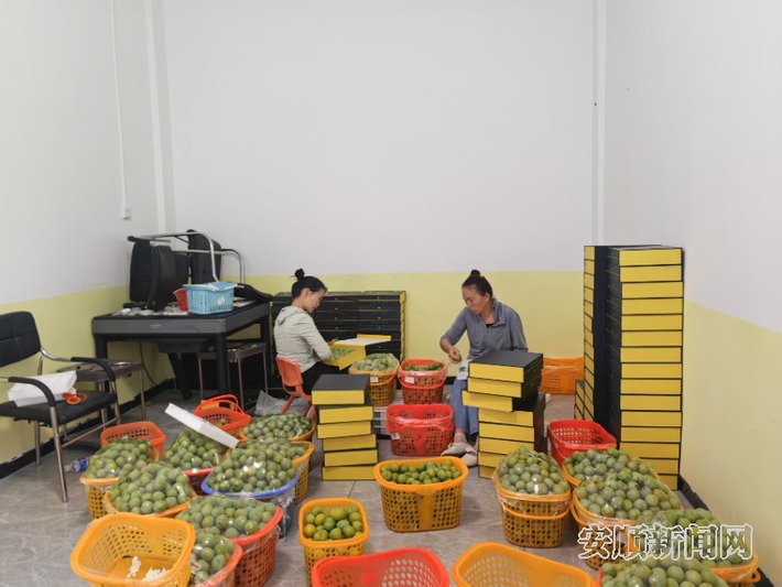 山上摘果忙,山下订单旺。刚采摘下来的新鲜蜂糖李被迅速送往各家分拣中心,果农们熟练地对果实进行分级、包装。