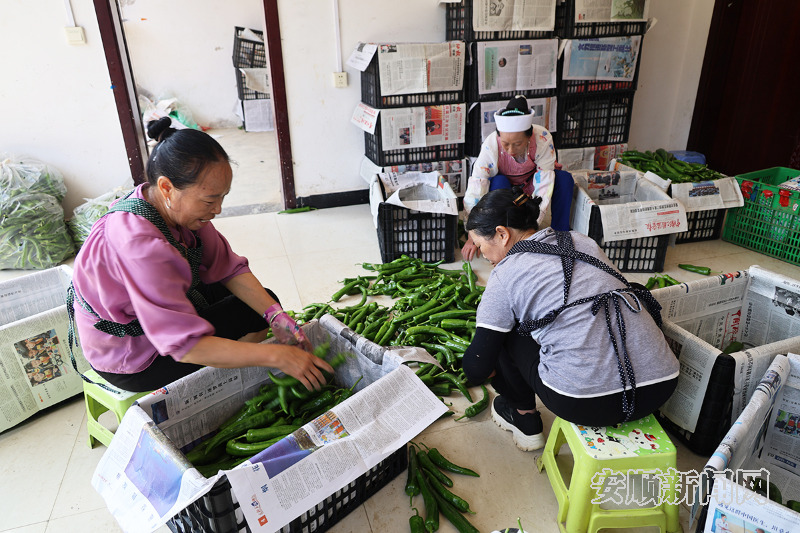 “从6月18日开始收购青椒以来,公司平均每天可收购近2万斤青椒,每日收购流水3-4万元,销往广东、福建、湖南等省份。”安顺清益农业发展有限公司管理人员林小学介绍,该公司成立于2022年,采取“公司+农户”的模式发展辣椒种植,实现统一育苗、统一移栽、统一管护、统一收购、统一销售,并向合作农户提供全程技术服务。“今年公司一共育苗6万盘,共带动周边农户种植辣椒近4000亩,并建立了稳定的销售网络,为减少辣椒运输损耗,公司还修建了冷库,在6月辣椒收购期投入使用。”