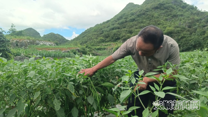 7月8日,在紫云自治县猫营镇沙坎村的辣椒种植地里,一串串饱满的辣椒长势喜人。村支书杨德军轻轻托起一株辣椒苗,满脸喜悦地说:“照这样的长势,亩产4000斤没问题。”