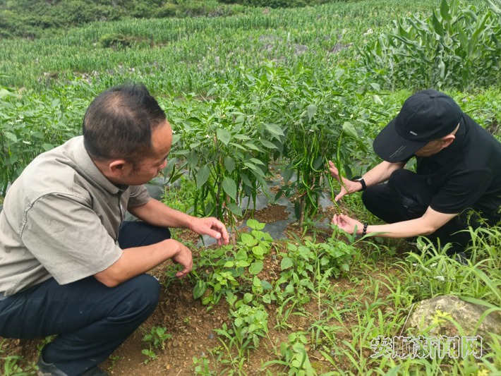 尽管辣椒还未完全“落地”,但已经吸引了收购商前来预购。当天,贵州遵义袁老头食品有限公司的采购人员走进沙坎村多块辣椒种植地查看辣椒长势,并与沙坎村达成了订购意向。