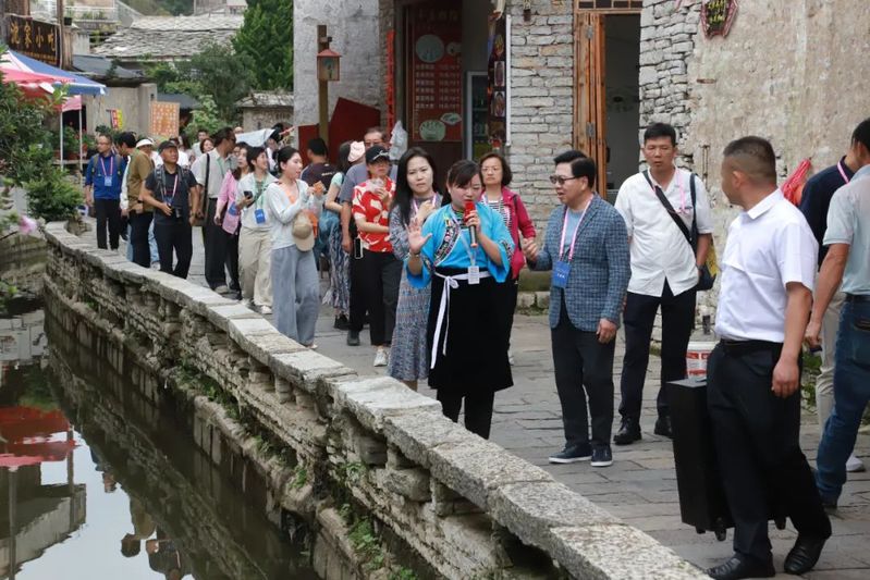 9日下午,文化组的嘉宾们走进天龙屯堡景区,仿佛穿越时空,回到了600年前的大明王朝。沿着观摩路线前行,在身着屯堡服饰的讲解员的带领下,嘉宾们一路深入了解屯堡文化的历史背景、建筑特色、传统服饰等,沿途还体验了屯堡大碗茶、黄豆酥等特色美食,引得嘉宾们频频点赞。