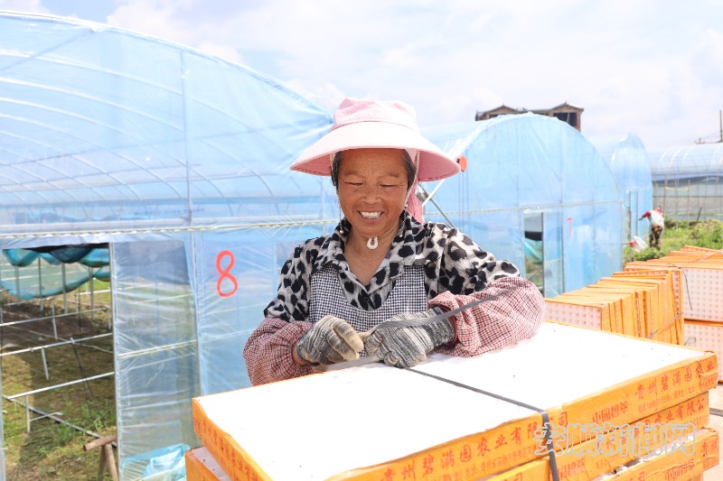 随着辣椒等各色蔬菜采收逐渐进入高峰期,贵州碧满园农业有限公司也迎来了用工高峰期。“现在公司每天收购青椒等蔬菜都需要15个打包工人和3个装车工人,发放的工资额为每天5000多元,有效带动周边村民就近务工就业。”罗玉寰表示,未来公司将发展精品蔬菜种植,进一步提升蔬菜育苗、管护等技术,为合作农户提供更加优质的技术指导与服务,并充分发挥蔬菜产业“短平快”的优势,丰富蔬菜品种,有效带动农户全年有收益,促进乡村产业发展。