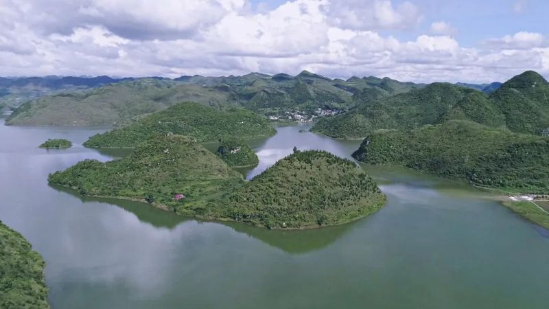 近日,记者驱车来到普定县夜郎湖,远远望去,清波荡漾的湖水与青山融为一体,湖面倒映着蓝天白云。绿水青山的背后,是夜郎湖十年如一日交出的生态答卷。