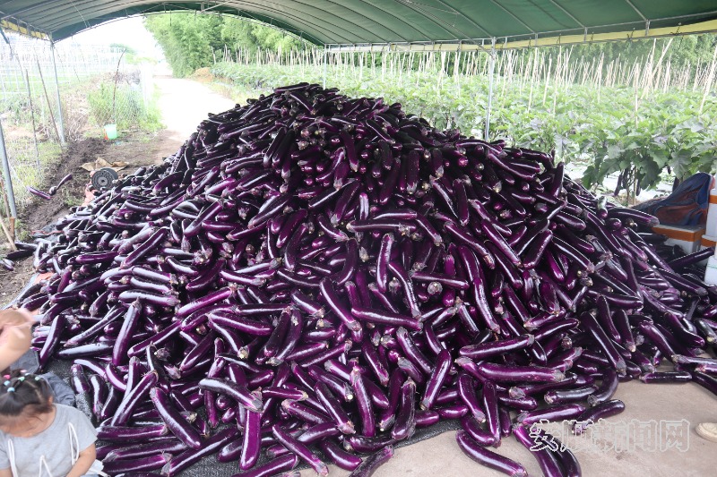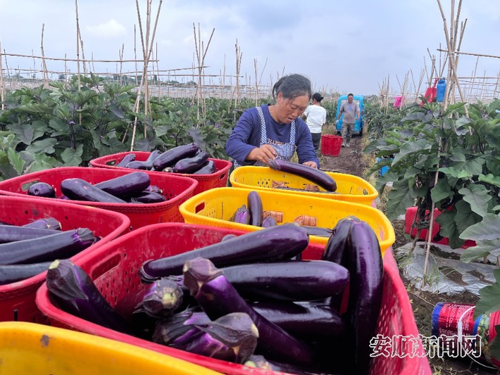 "这茬茄子品相好,刚摘下来的,很新鲜,卖相很好!"正在采摘茄子的务工村民王朝霞擦了擦额头的汗,脸上堆着藏不住的笑意。