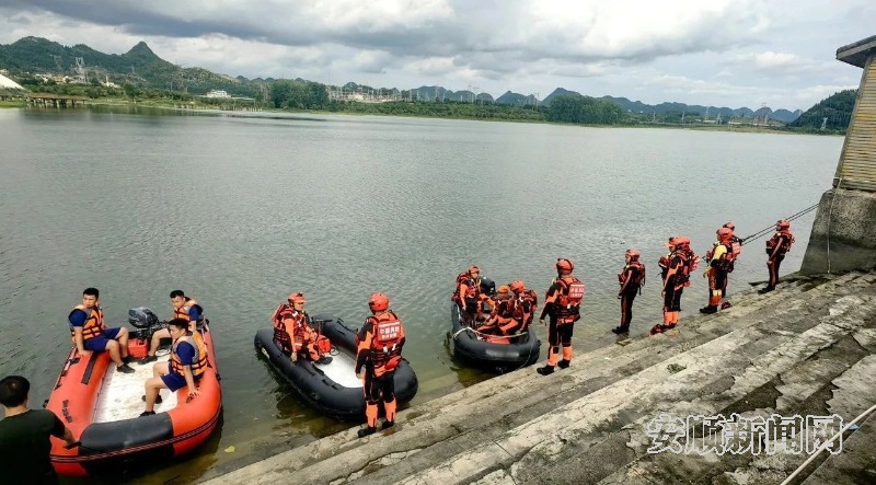 7月9日,普定县消防救援大队、县应急管理局、县水务局、县卫健局等多部门联合,在普定县青山水库组织开展水域救援实战训练。