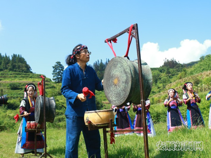 吴霞便是他的学员之一,她告诉记者:“我是铜鼓神韵乐团成员之一,跟着廖老师学习铜鼓十二调,在他的精心教导下,我学有所成,现在每周在镇宁第四小学上两次课,专门培训学生铜鼓十二调,很高兴能为这项非遗传承贡献自己的一份力量。”