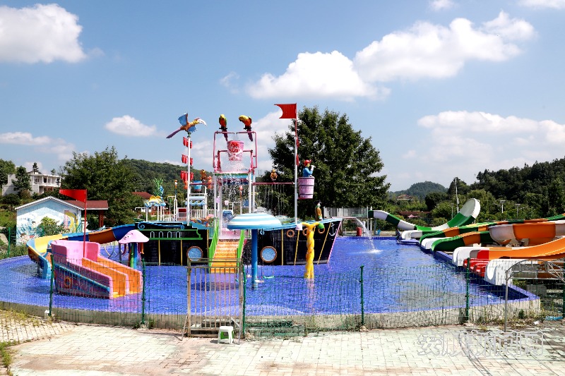 邢江河畔,鱼鳞瀑布溅起的水花在阳光下闪烁,孩子们的欢笑声穿透潺潺水声。