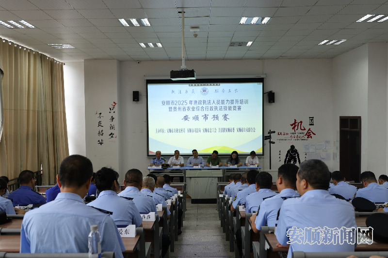 7月25日,安顺市2025年渔政执法人员能力提升培训暨贵州省农业综合行政执法技能竞赛(安顺市预赛)活动在安顺职院举行。此次活动由市农业农村局、市司法局、市总工会、共青团安顺市委、市妇女联合会主办,旨在激励农业综合行政执法人员比学赶超、以赛促干,全面提升我市农业综合行政执法能力,来自我市各县(区)的30余名农业综合行政执法人员参加。