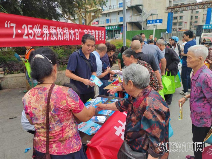 7月25日“世界预防溺水日”当天,平坝区鼓楼街道联合区水务局在黔中一号广场组织开展“7・25世界预防溺水日”宣传教育活动。活动通过悬挂横幅、发放资料、真实案例讲解等方式,向居民普及防溺水知识,强调未成年人私自下水的风险,并敦促家长落实监管责任。当天,共发放宣传资料、宣传品600余份。