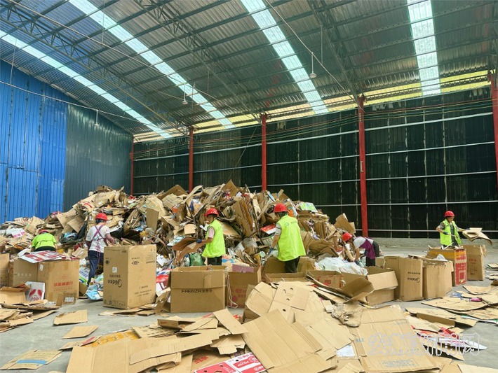 清晨,在贵州叁壹再生资源供应链管理有限公司分拣中心,大型机器正在高速运转,各类废弃纸壳经由巨大的传送带运送后进行压缩等操作;工人们熟练而迅速地将废纸、塑料、金属等进行分类。日复一日的热火朝天景象,是安顺“无废城市”建设的日常图景。