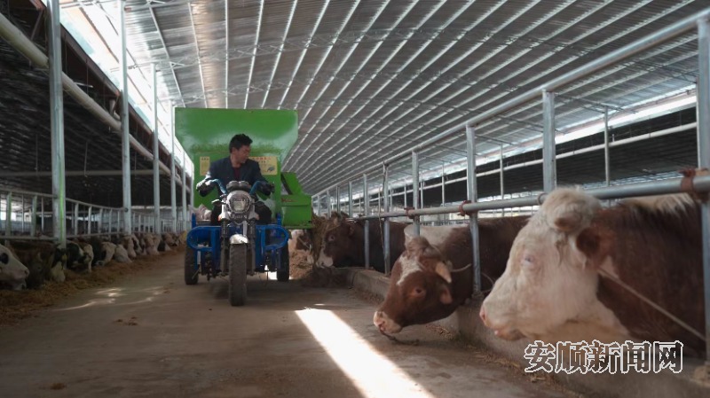 普定县畜牧服务中心副主任方松介绍:“2025年,普定投入财政衔接资金2500万元,新增肉牛养殖5000头,累计投入财政资金5500万元,培育肉牛家庭农场365家。同时,有5家大型秸秆收储企业,年收储量达3万吨,有效保障了肉牛产业前端饲草需求。”