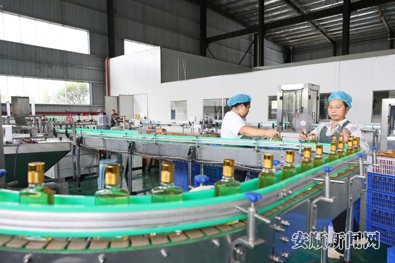 在生产车间里,一条条生产线正在高效运转。刺梨经过清洗、压榨、发酵、陈酿、过滤、澄清等众多工序后变成刺梨酒,即将被发往全国各地市场。