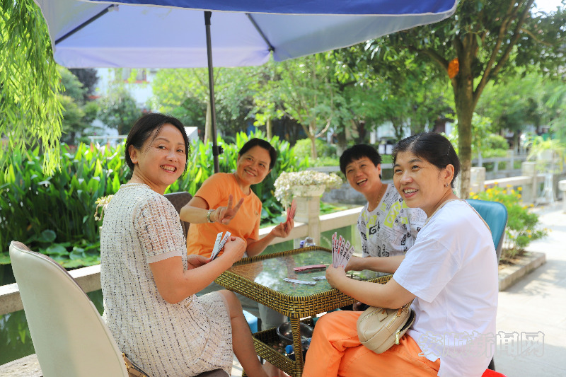 午饭前,来自广州市天河区的饶阿姨和朋友们坐在河边的杨柳树下闲聊,问及旅居体验如何,她说:“很好啊!安顺的夏天,天气凉快、空气清新,居住环境舒适宜人、景观优美,吃的也是安顺本土菜肴,美味可口。最近几年,我们都过来避暑的。”